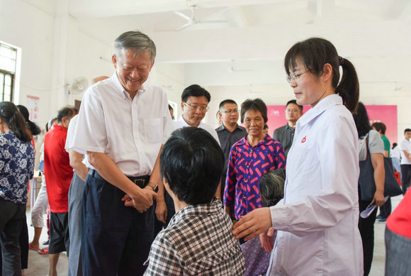 在柯木湾村文化室,陈春声书记看望了学校“三下乡”社会实践团队。此次下乡实践团队共有105名师生,由附属第一医院和附属第六医院的青年医师组成的医疗服务队涉及内科、外科、眼科、康复科等方面,共为约300人次村民进行了义诊,赠送价值近11000元的药品。由大气科学学院、环境科学与工程学院学生组成的农业服务队向村民们科普气象和垃圾分类知识。由物理学院学生组成的家电维修队为60余位村民修理了家电。由舞蹈团等艺术团师生组成的文化服务队在丰阳镇夏湟村和柯木湾村为村民们奉献了两场文艺汇演。此外,还开展了乡村墙绘、普法宣传、社会调研等工作。陈春声书记与师生及村民亲切交流,希望各服务小组发挥所长,正确认识国情、社情、民情,切实在服务乡村振兴、助力脱贫攻坚等社会大课堂中受教育、长才干、做贡献。