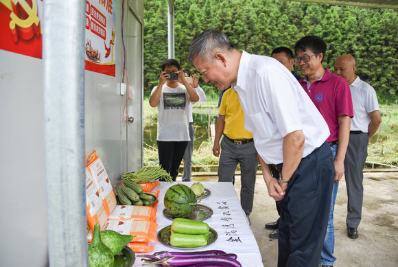 陈春声书记一行先后到夏东村、西风寨、上石咀、黎屋冲等考察生态村、整洁村建设情况。在西风寨村,陈春声书记认真听取了生命科学学院袁剑刚副教授关于特色农业“产学研”基地的建设计划,即将在村开展“稻-蛙-鱼”有机生态种植养殖,根据当地资源条件,开展高品质农产品生产,村集体可通过租地和劳务收入获得增收。陈春声书记强调,学校要发挥专业优势,加快项目推进步伐,做好产学研文章,为当地农户实现家门口就业。为更好推广柯木湾村农特产品,管理学院也发挥学科优势,开展电商知识进柯木湾村行动,培训村民如何开展电商,目前柯木湾村已初步实现农特产品上网销售,陈春声书记还现场微信支付,购买了玉竹等农特产品。