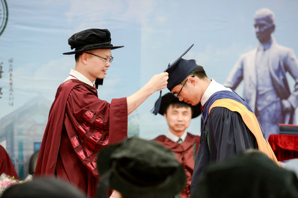 在《山高水长》悠扬的乐曲声中,2019年学位授予仪式正式开始,毕业生逐一走向主礼台,副院长(主持工作)蔡铭教授为获得学位的毕业生拨穗并颁发学位证书。毕业生受礼完成后向导师献花,感谢导师的培养和指导。仪式庄重而温馨,观礼的师生代表和毕业生亲友共同见证了这一激动人心的时刻。