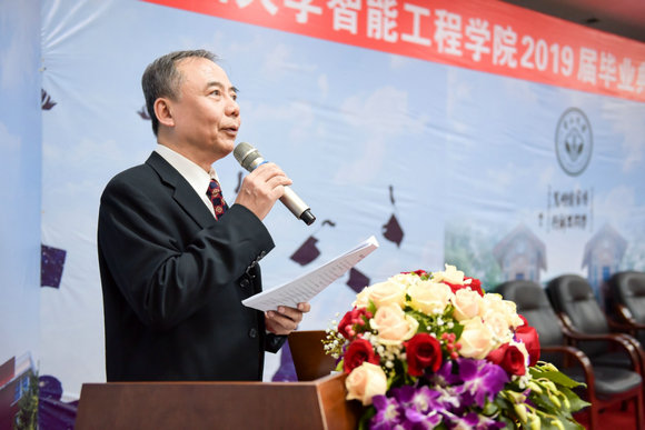 6月26日下午,智能工程学院2019届研究生毕业典礼暨2019年学位授予仪式在工学院楼B403讲学厅举行。学院党委欧阳可全书记、副院长(主持工作)蔡铭教授、副院长谭晓军副教授、党委黄达峰副书记、全体研究生导师以及2019届研究生毕业生参加了典礼。毕业生亲友代表在现场共同见证了仪式激动人心的时刻。毕业典礼由智能工程学院副院长谭晓军主持。