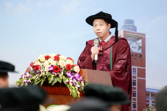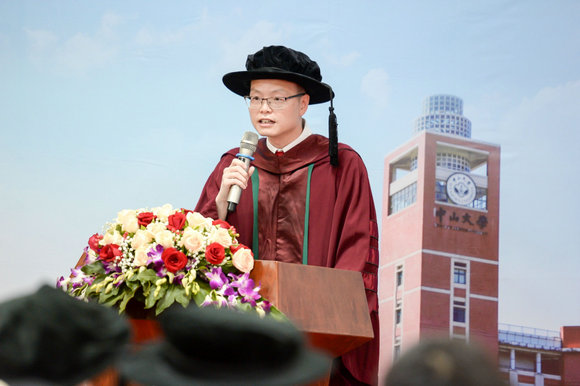 伴随着国歌和热烈的掌声,谭晓军副院长宣读孙中山先生的毕业训词,全体研究生毕业生认真聆听,齐声回应“谨遵教诲”。