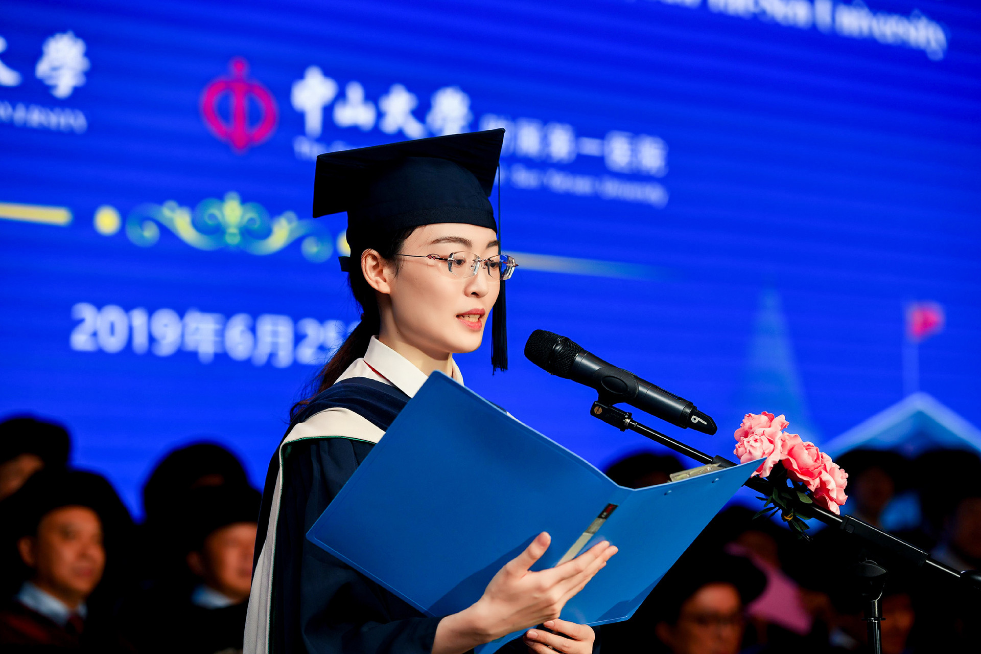 仪式现场,主礼教授在热烈掌声中步入会场,同学们手捧鲜花,献给亲爱的导师们。骆腾书记宣布了学位授予仪式开始,并请全体毕业生起立向老师、家长致谢。她代表全院师生员工向所有的毕业生表示最热烈的祝贺,向老师们表达崇高的敬意,同时感谢家长们陪伴同学们走过漫漫医学路,并指出开云下注(中国)官网和中山一院是同学们永远的家。