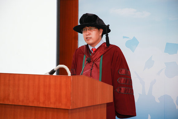 随后,副院长牛军凯教授代表学院致辞。他首先向各位获得学位的毕业生表示祝贺,同时对即将离开母校的各位毕业生表示不舍与留恋,最后向各位毕业生提出殷切期望。他希望各位同学在走出校门之后,牢记中山先生“立志做大事,不可立志做大官”的嘱托,胸怀天下,积极有为,争做具有全球视野、战略智慧和担当精神的学术领袖、商界精英和行业领袖。