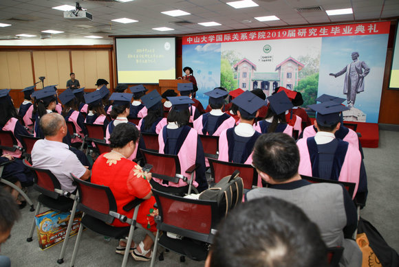 “白云山高,珠江水长……振兴中华,永志毋忘。”伴随着悠扬的旋律,动听的歌声,2019届研究生毕业典礼终告一段落。大学毕业,此其发轫。从今天起,2019届研究生毕业生即将告别大学校园,迈向各行各业,开启新的人生篇章。学院衷心祝愿各位毕业生,牢记中山先生嘱托,学无止境,胸怀大志,成为具有“德才兼备、领袖气质、家国情怀”的新时代毕业生。同时,希望各位毕业生在展翅高飞,鹏程万里之余,常思母校,常忆母院,饮水思源,为学院长远发展做出贡献。