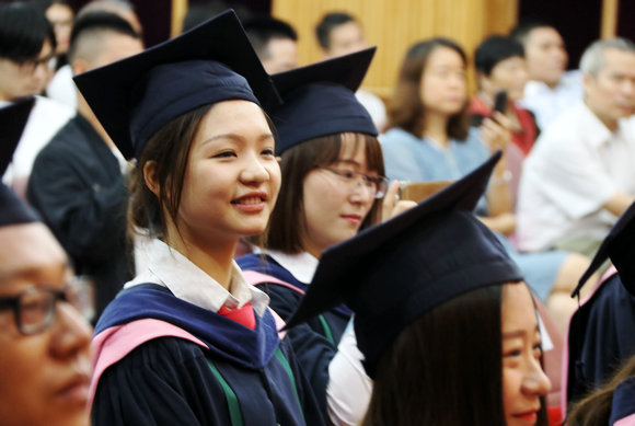 鞠躬、正冠、拨穗、颁发毕业纪念册、握手、合影……这一连串动作,两年前我就无比期待。念念不忘,必有回响,此时万般回忆涌上心头:收到研究生录取通知书时的期待,第一次迈进中大南校园时的喜悦,与三两知己漫步在怀士堂前的欢笑,傍晚珠江边的金黄日落与华灯初上……时光荏苒,如今我即将离开校园,成为一名在一线教学的中学英语老师,感谢中大让我成为了更好的自己。我将永远记住中大教给我的点点滴滴,不断继承和发扬中大和外院精神。