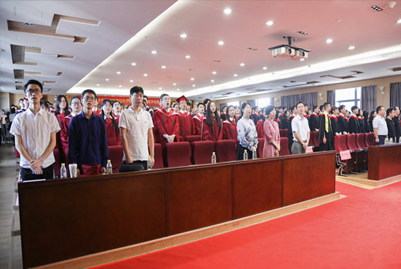 学位授予仪式在庄严的国歌声中拉开帷幕。沈榆平副教授宣读孙中山先生毕业训词,全体毕业生起立聆听并齐声回应“谨遵教诲”。