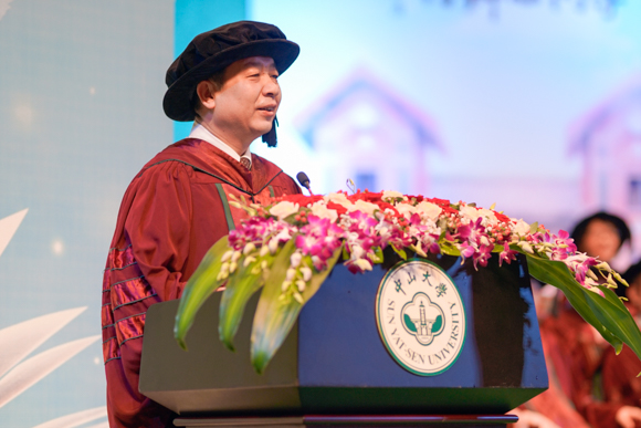 碧瓦、骄阳、凤凰花……毕业季的中大,沐浴在种种色彩交映的辉光之中。两天八场,涵盖38个院系的2019届毕业典礼暨2019年学位授予仪式,在梁銶琚堂落下帷幕。校学位评定委员会副主席、校领导孙冬柏、李善民、余敏斌、王雪华分别主持仪式,校学位评定委员会主席、校长罗俊为近8000名毕业生授予学位。