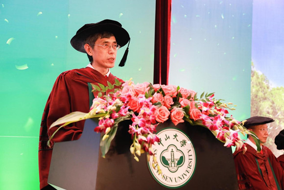 随着礼堂大门徐徐开启,蔡禾教授、周大鸣教授引领身着导师袍主礼教授步入会场。在场人员全体起立致敬,掌声、欢呼声瞬间响彻整个礼堂。王宁教授逐一介绍导师代表,全体毕业生和亲友致以热烈掌声回应。