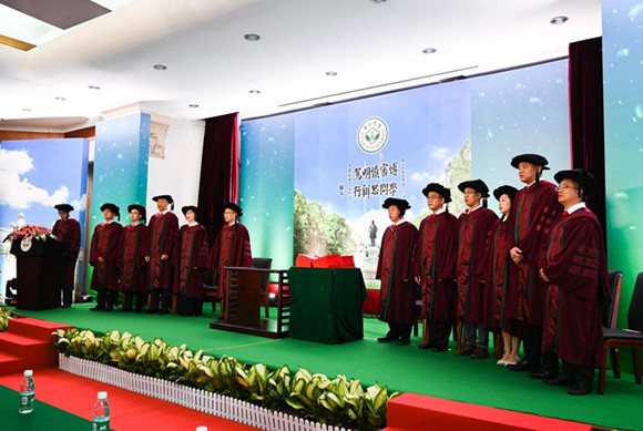 仪式上,院长张应强教授寄语毕业生,要以“知行合一”的理念学会做人、做事、做学问。他勉励毕业生,要在个人前途中思考为何而“行”,要将个人利益同国家命运紧密联系起来,参与到国家和民族复兴的伟大进程中,方能成为有担当的时代新人;要在“行”中“守规矩”,越是取得成绩的时候,越要有如履薄冰的谨慎,越要有居安思危的忧患,做任何事情,都要有规则意识,这样才能更好认清大势、顺利前行、厚积而薄发;要在“行”中“知敬畏”,面对未知的知识领域,要充满敬畏地去学习,不为虚名小利的得失所困,不为一时一事的成败所拘,最后才能干成一番大事业。当院长号召全体毕业生一起鼓掌,感恩父母的养育,感谢老师的教诲时,全场爆发出雷鸣般的掌声,亲友、毕业生眼里饱含着激动的泪水。