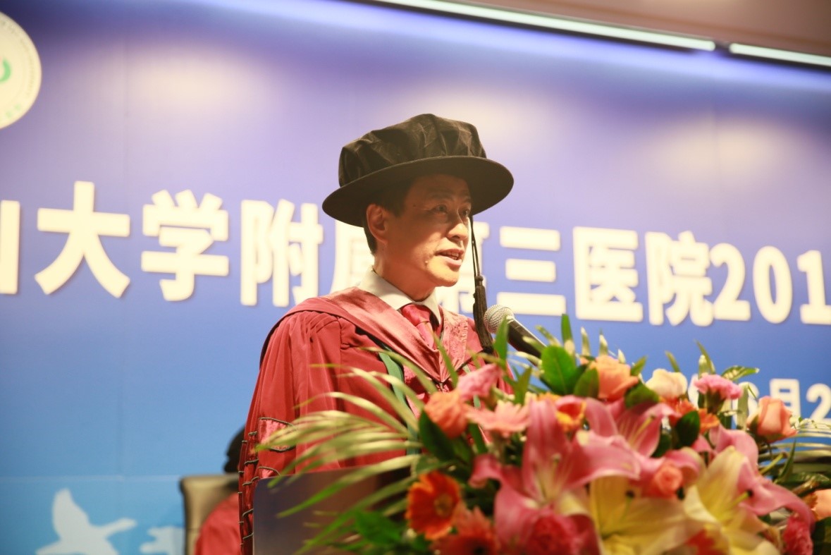 首先,我希望你们要时刻怀有一颗悲悯之心,恪守医道,心怀大爱,不忘初心,尊重生命。社会纷乱复杂,你们内心一定要有所坚守,能守住人类道德的底线,守护灵魂深处的净土,守望人性本质的光辉,放下功利,不急不躁,铭记中山三院“医德至上,博积精勤”的院训,肩负“除人类之病痛,助健康之完美”的重任,履行“悬壶济世,救死扶伤”的道义。希望每一位同学都能做一名有仁爱之心的医者,通过为患者解除痛苦最终实现医者的价值;奉献社会,以仁爱之心收获群众满意。