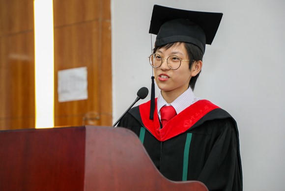 作为连续三年获得国家奖学金的“学霸”,优秀本科毕业生秦咏辉在发言中感恩能够在最好的时候遇见中大,遇见中大地科。她回忆起专业实习实践的点点滴滴和自己的求学成长经历,十分感谢学院和老师的悉心栽培,祝愿学院再攀高峰!