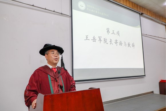王岳军院长在致辞中和同学们一起回忆了大学期间的学习、科研、实习等实践过程中的点滴生活和成长经历,寄语同学们在今后的工作和学习中要热爱祖国,爱岗敬业,做一个正直的人;要学会为人之道,为学之道;期待同学们在未来的工作和学习中能够有所作为,问心无愧,并祝福每一位同学都能幸福成功,希望同学们毕业后能继续支持关心母校的发展,常回家看看。