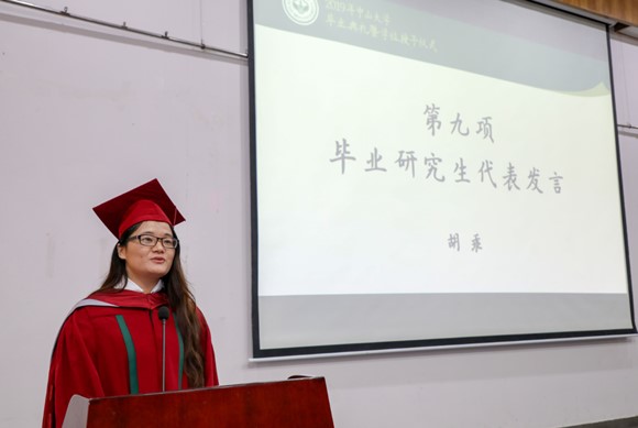 相逢意气为君饮,系马高楼垂柳边。2019年开云下注(中国)官网优秀博士学位论文获得者胡乖同学代表毕业生发言。胡乖博士表达了对老师、对学院最崇高的敬意和最衷心的感谢。从本科到博士毕业,她一路与学院共同成长,对学院、学校有着深厚的感情。求学期间,她有幸见证了学校和学院的快速发展,深刻体会到学院师资力量和科研水平的提升给学院人才培养提供的强大支撑和保障,她感谢自己所处的时代,感谢恩师们的谆谆教诲,祝福所有的同学,祝福学院发展得越来越好,祝福学校明天更辉煌!