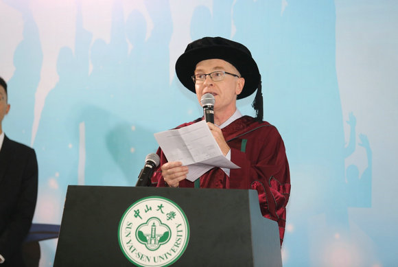 法国驻广州总领事馆科技与教育合作领事Monsieur Nicolas GHERARDI先生致辞。他说,中法学院涵盖了从工程学到人文社会科学的所有学科,是校际合作和中外交流的成功典范。中法核工程与技术学院的建立,符合核能这一两国战略领域的三重目标:即政治目标、工业目标和学术目标。“我接触中法核快三年了,可以证明这个项目取得了巨大的成功。”中法核学生完成学业的难度之大,相信在座的任何一位都不会反驳,但这同时也是一个优秀的人才培养计划,汲取了中法两国教育模式中最优秀的部分,并将两者成功结合在了一起。这一培养计划为年轻毕业生开启辉煌的职业生涯提供了所有有利条件。能够从中法核顺利毕业,你们必将前程似锦。正如其他的中法学院一样,中法核也培养着明天的决策者,他们将在中外关键领域担任要职,在科技、经济、环境和社会领域应对各种挑战。你们是明天的决策者,是老师们的骄傲,也将成为法中合作的大使,祝你们前程似锦!