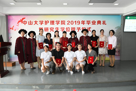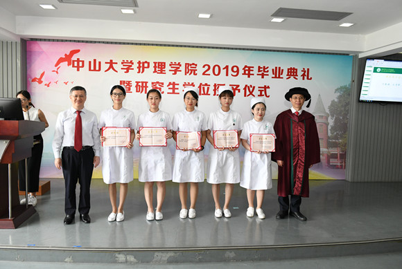 毕业典礼上还对优秀博士生导师尤黎明教授、优秀博士生论文作者刘旭同学、5名获得2019年卢惠清教育奖学金和硕氏专项奖学金的本科优秀毕业生、29名优秀临床带教老师以及 2019年全国护理本科生临床综合技能邀请赛的优秀教官、指导老师和后勤服务人员进行了表彰,学院领导和各教学医院护理部主任分别为获奖师生颁发了荣誉证书。