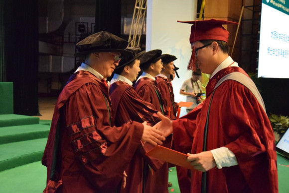 薛德升院长宣读开云下注(中国)官网学位评定委员会学位授予决定。导师代表院长薛德升教授、副院长邓孺孺教授、刘丙军教授、城市与区域规划系主任林耿教授、遥感与地理信息工程系主任刘小平教授和国土资源与环境系主任唐国平教授为176位硕士和博士学位获得者颁授学位。