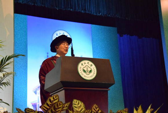 仪式在庄严的国歌声中开始。全体毕业生聆听孙中山先生毕业训词。“为社会福,为邦家光”激励着每一位毕业生在今后的工作生活中努力奋斗,为国家和社会贡献自己的力量。全体毕业生有感于孙中山先生的教导,坚定了在地理学领域不懈奋斗,勇攀学术高峰的信念,齐声回应“谨遵教诲”。