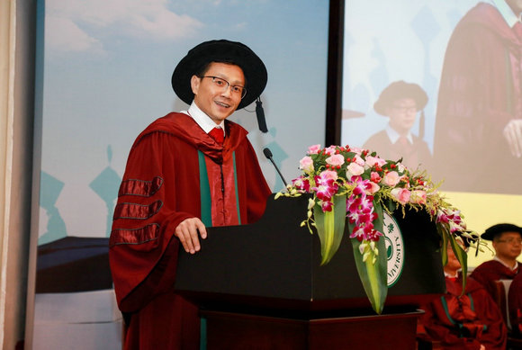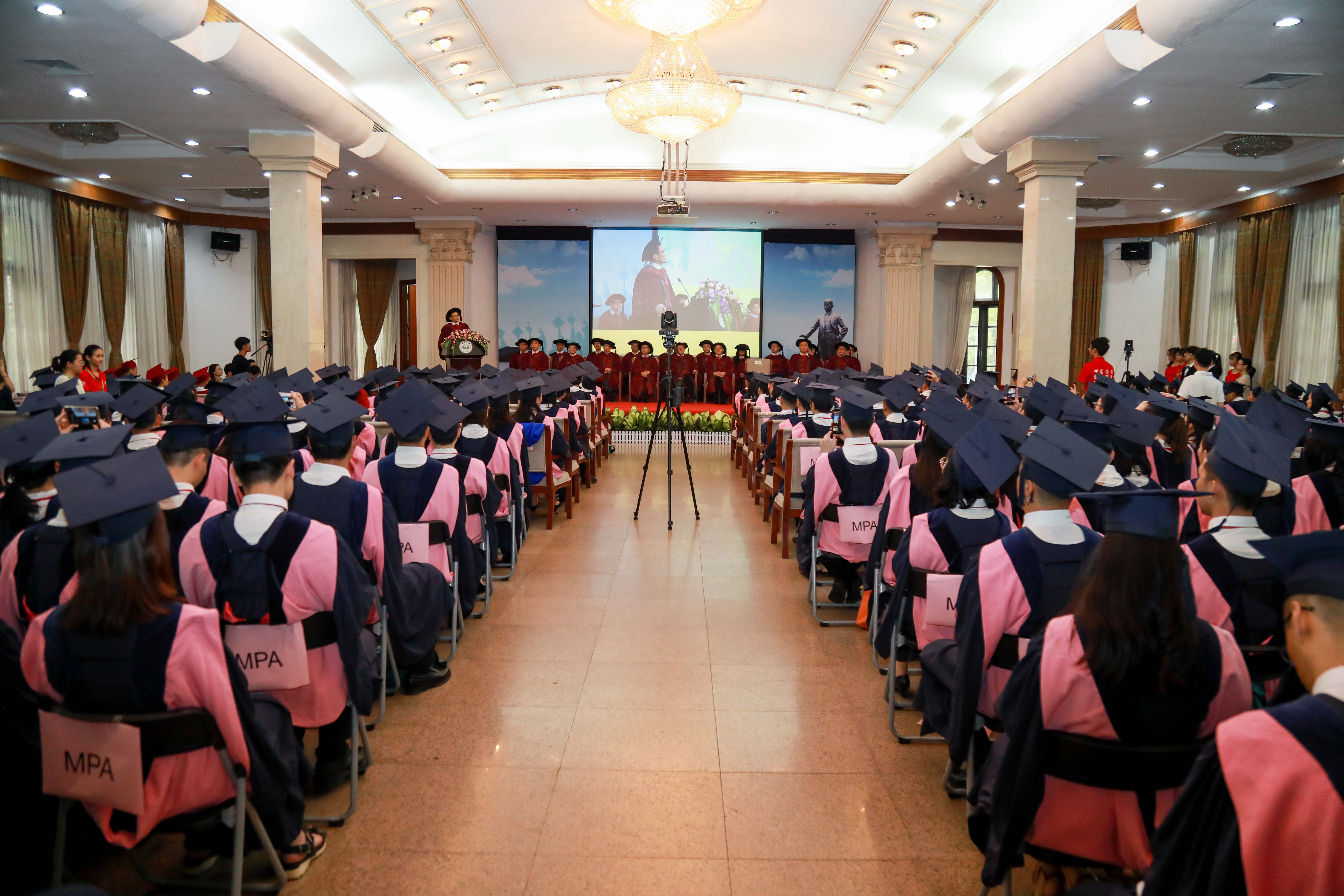 毕业典礼在庄严的国歌中拉开帷幕,谭安奎院长代表学院致辞,向全体毕业生表达了期许,第一,毕业生要用所学之科学方法和学院所传递之价值观去安顿好自我、家、国和天下;第二,不为名利遮望眼,始终保持对学术的敬畏并享受学术的纯粹,坚守读书人的斯文和安身立命的根本;第三,MPA学员和即将进入公共部门的毕业生应该秉持公共精神,践行学院“善政天下、良治中国”的宗旨。最后,他用英文向发展中国家公共管理硕士(IMPA)毕业生们发表了简短的祝词,他希望各位IMPA学员能够运用在开云下注(中国)官网的学习成果,提升领导力,更好地服务于自己的国家,同时在自己国家与中国之间扮演好友谊桥梁的角色。
