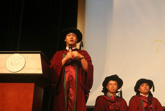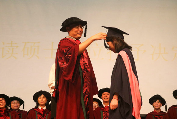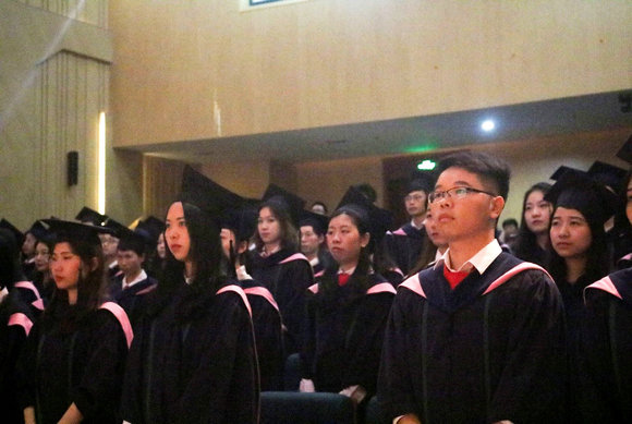 林功成副教授:今年我们院的研究生学位授予仪式由研究生的导师为其授予学位,更加具有了不一样的意义。相对来说,学生与自己的导师之间会更加地亲密,所以这场仪式是更加独特、有意义的。如我今天所看到的,现场氛围庄重而不失融洽。最后,希望这场仪式能给毕业生们带来最美好的回忆,同时他们也能永远铭记并热爱自己的母院!