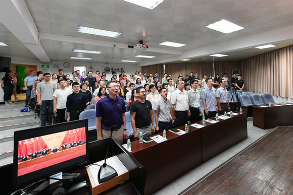 校党委副书记、纪委书记林东伟,相关部门的负责同志以及来自62个院系与附属医院的师生代表共150余人在广州校区南校园第三教学楼主会场集中观看大会直播。中国语言文学系、心理学系、生命科学学院、管理学院、药学院(深圳)、光华口腔医学院、附属第一医院等28个单位组织分会场进行收看,参与人数达5000余人。