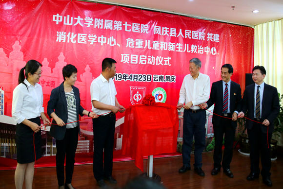 随后,陈春声书记一行前往凤庆县人民医院调研,听取医疗帮扶工作的汇报,并为凤庆县人民医院消化医学中心暨危重儿童和新生儿救治中心揭牌。附属七院何裕隆等专家教授还向县人民医院捐赠了七个类别的书籍共197本。陈春声书记希望学校各附属医院的帮扶能为凤庆留下一批带不走的医疗队,更好地服务当地广大百姓,切实做到保障基本医疗。
