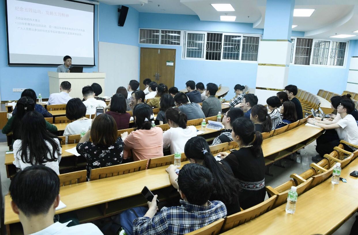 4月22日,党委学生工作部“发扬五四精神,为实现中华民族伟大复兴的中国梦而不懈奋斗”——学习贯彻习近平总书记4月19日在中共中央政治局第十四次集体学习时的重要讲话精神专题会议,在熊德龙学生活动中心一楼讲学厅举行。党委学生工作部全体人员、院系党委和团委教师代表、学生代表等50人参加专题会议。本次会议由校团委书记王猛教授主持,校团委副书记马明辉教授做报告,14位参会师生代表发言。
