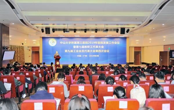 3月15日至16日,附属第三医院2019年医院发展工作会议暨第七届教职工代表大会、第九届工会会员代表大会第四次会议隆重召开。校党委副书记余敏斌出席会议并讲话。附属第三医院党政领导班子成员、全体中层干部、双代会代表、粤东院区代表以及老教授代表近500人参加会议。