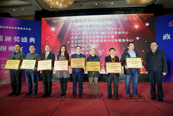 1月3日,我校政府采购与招投标管理中心在第14届全国政府采购集采年会荣获“2018年度全国政府采购先进采购单位”称号,本次集采年会是由财政部指定政府采购宣传媒体《政府采购信息报》与政府采购信息网联合主办,来自财政部、教育部、水利部等中央部委,地方财政部门,集中采购机构,军队、高校等采购人单位和社会代理机构的400余位代表参会。2018年,中心还获得了高校政府采购领域相关学会颁发的“2018年度高校政府采购十佳集体”、“2018年广东省教育系统政府采购工作先进集体”等称号。