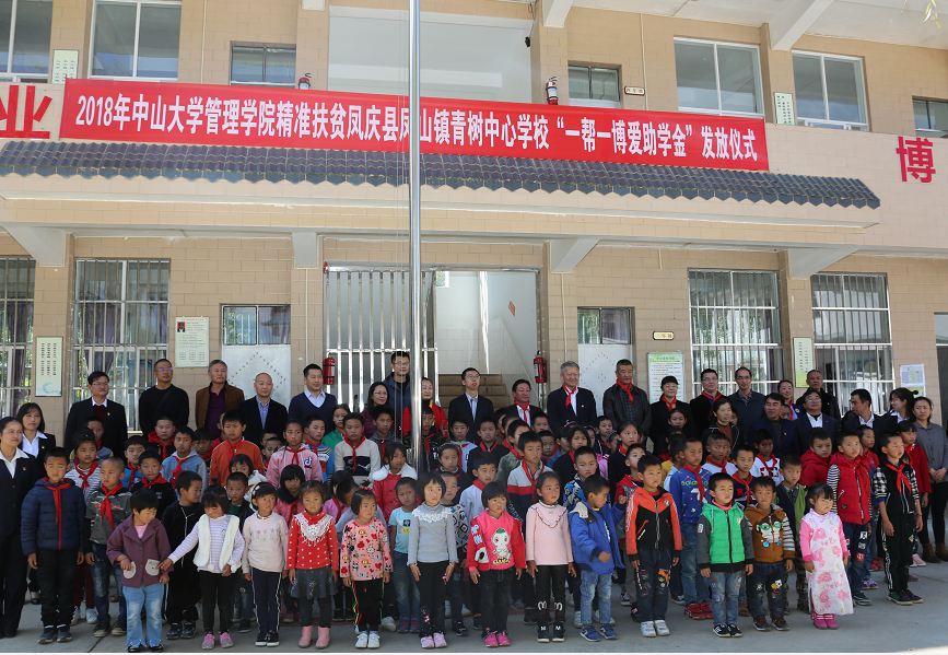 本次考察期间,管理学院还向凤庆青树中心校、郭大寨乡团山完小224名贫困生发放了每人1000元,共计22.4万元的“一帮一”博爱助学金。心理学系副书记李桦教授为县中小学30名教师开展了第二期心理咨询辅导。陈书记一行还慰问了我校在凤庆的挂职干部、研究生支教团、附属中学教师以及正在凤庆培训的学校团干,向此次参与扶贫工作的单位、专家、校友颁发了鸣谢证书。