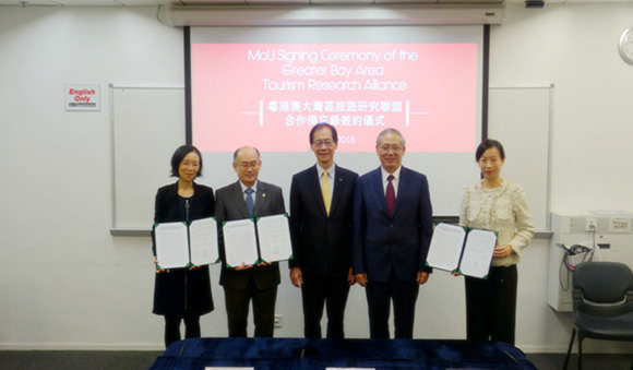罗俊校长与唐伟章校长共同见证《成立粤港澳大湾区旅游研究联盟合作备忘录》的签署仪式