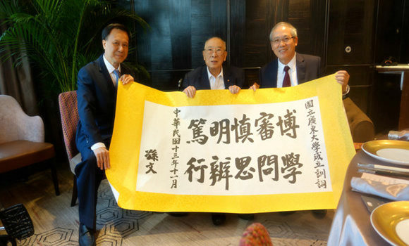 罗俊校长、肖海鹏副校长向伍沾德先生赠送我校校训拓本