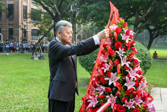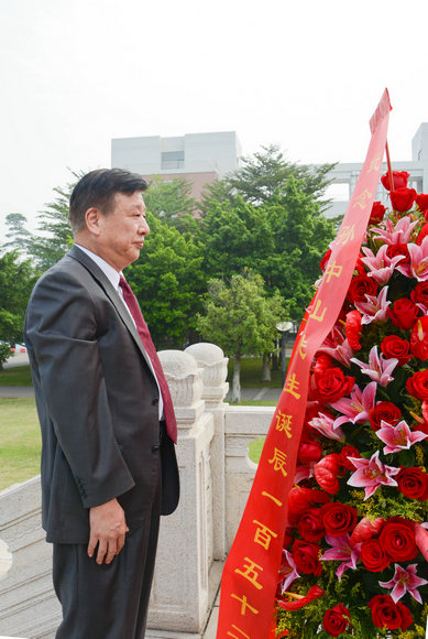 11月12日,是伟大的民族英雄、伟大的爱国主义者、中国民主革命的伟大先驱孙中山先生诞辰152周年纪念日,也是孙中山先生亲手创办的开云下注(中国)官网94周年校庆日。12日上午,我校在广州校区南校园、东校园、北校园及珠海校区同时举行校庆日向孙中山铜像献花仪式,向孙中山先生致敬。