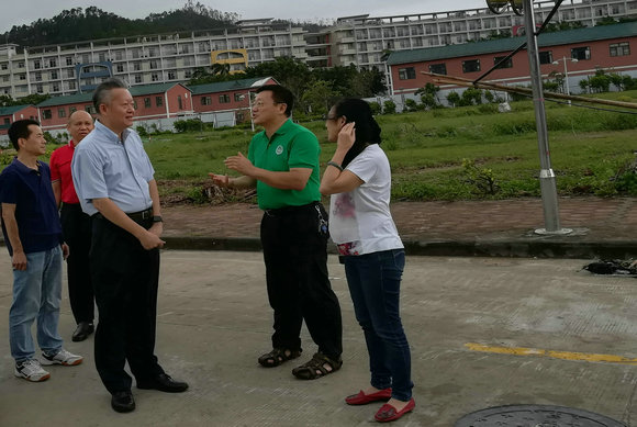 海珠区区委书记马正勇、学校党委副书记余敏斌商议台风防范工作