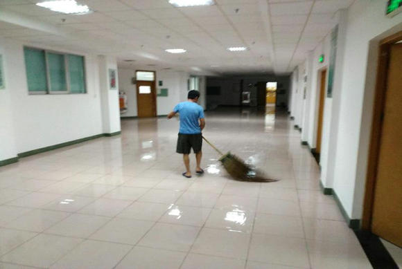 工作人员处理室内进水