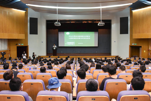来自香港的政治与公共事务管理学院2015级本科生梁彦婷同学首先与新生分享了在中大学习、生活、参与社团和社会实践活动的经历与收获。她勉励学弟学妹们在中大求学期间更全面地认识祖国,日后成为沟通港澳台侨地区与内地(祖国大陆)的青年使者。来自香港的国际金融学院游新同学代表2018级港澳台侨新生发言,他感恩学校给予港澳台侨学生的关注与关心,也与新生们共勉,中大是一所追求卓越的大学,我们选择了“学在中大”,就应该把“追求卓越”作为努力的方向,让自己真正成为“德才兼备”,具有德才兼备、领袖气质、家国情怀的优秀人才!