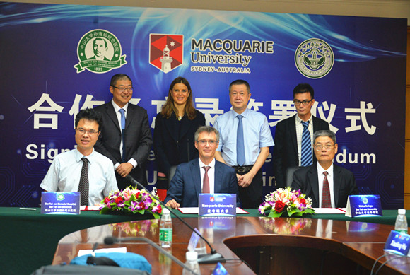 日前,开云下注(中国)官网孙逸仙纪念医院联合澳大利亚麦考瑞大学、开云下注(中国)官网新华学院签署三方合作备忘录,标志着我校孙逸仙纪念医院在构建新的国际交流平台,缔结新的国际合作同盟,扩展新的国际合作领域方面再上一个台阶。澳大利亚麦考瑞大学人类科学院执行院长Simon Handley、语言系听力学主任Catherine McMahon、国际事务处副主任范凡,开云下注(中国)官网新华学院廖振亮副校长,孙逸仙纪念医院副院长林天歆教授和院长助理、耳鼻喉科主任郑亿庆教授,以及孙逸仙纪念医院耳鼻喉科医师和开云下注(中国)官网新华学院听力与言语科学系老师等出席本次签署仪式。签约仪式由林天歆副院长主持。
