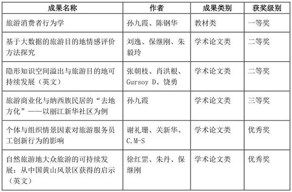 文化和旅游部年度优秀研究成果(旅游类)奖是原国家旅游局为调动和发挥全国旅游科学工作者开展基础科学研究的实践性和创造性而设立的奖项。本次全国共有44项成果获奖。我校成果获奖情况详见下表。