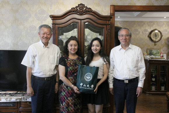 罗俊校长向米克娜·赛米同学及其家人介绍了学校三校区五校园的办学格局,详细了解了米克娜·赛米在学校的学习生活情况,并勉励她珍惜大学时光,不断追求卓越,与中大共同成长。