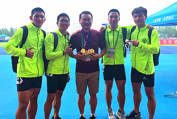7月18日,男子高水平A组预赛开始。我校政务学院2017级本科生周国兴(第一棒)、李文杰(第二棒),政务学院2016级本科本邹琦(第三棒)、禤达军(第四棒)组成4*100米接力参赛小组,以预赛第一名的成绩顺利晋级决赛。并在7月19日的决赛中发挥稳定斩获男子高水平A组4*100米接力赛决赛冠军。
