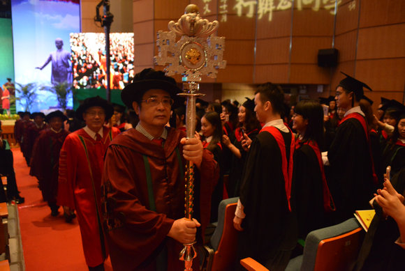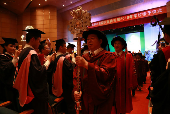 化学学院院士计亮年教授今年是第二次执权杖,他希望权杖之光能照耀学子未来美好的人生。在他看来,学位授予对于毕业生来说只是起点。他说,“这只是成功的第一步,道德比学问更重要。希望学生能以德为先,发扬中华民族优良传统,比如勤劳勇敢,用爱心待人;也希望毕业生在业务上继续努力,为国家各方面发展做出应有的贡献,祝愿大家有一个美好的人生。”
