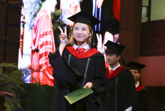 接过毕业册的那一刻,来自泰国的外国语学院本科毕业生何文华激动万分。对他而言,在中大度过的四年时光里最为可贵的是遇到一群良师益友。尽管在学习生活中遇到过不少挑战,但一路有师友相伴,他在终点收获的除了许多美好的回忆,还有“比以前成熟、懂事得多”的自己。“最感谢分别在我本科一年级和论文写作中提供指导的周青青老师和洪炜老师,”他说,“他们对我非常好,也教会我很多事情。我想对他们说一声‘非常感谢’!”