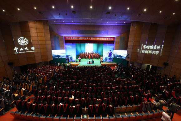 随着激扬的音乐响起,舞台灯光将位于广州校区南校园的梁銶琚堂映照得熠熠生辉。今天是2018届毕业典礼暨学位授予仪式的第一天,也是这群中大学子人生旅程的又一转折点。这意味着他们学习和生活的时光已然告一段落,明天将踏上新的征程,迎接新的机遇和挑战。