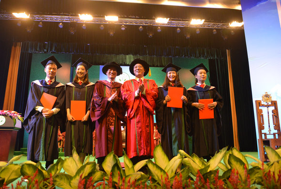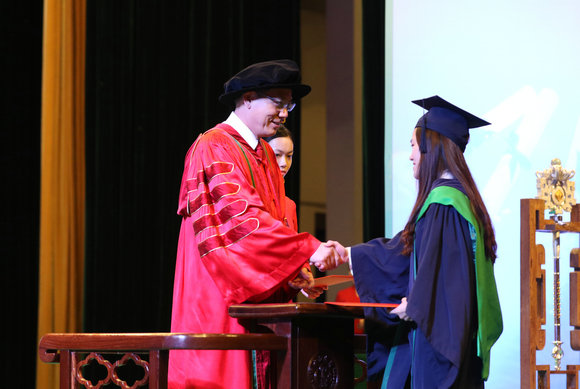 在哲学系(珠海)主任陈建洪教授看来,今天的学位授予仪式,是所有中大毕业生人生的转折时刻、庄严时刻和神圣时刻,权杖象征着知识的崇高、大学的权威、成长的光辉,赋予整个仪式以神圣感和庄重感。对于哲学系(珠海)来说,这场学位授予仪式更是意义非凡:“虽然今年我们只有四位毕业生,但作为哲学系(珠海)的第一届硕士毕业生,他们是不可超越、载入史册的第一届。他们的成长见证了哲学系(珠海)的成长,也见证了珠海校区新建院系日益发展壮大的历程。两年前他们怀揣梦想和期待来到中大求学,两年间我们共同成长,现在他们要毕业了,我希望他们带走的梦想比来时的梦想更大、带走的期待比来时的期待更远。”
