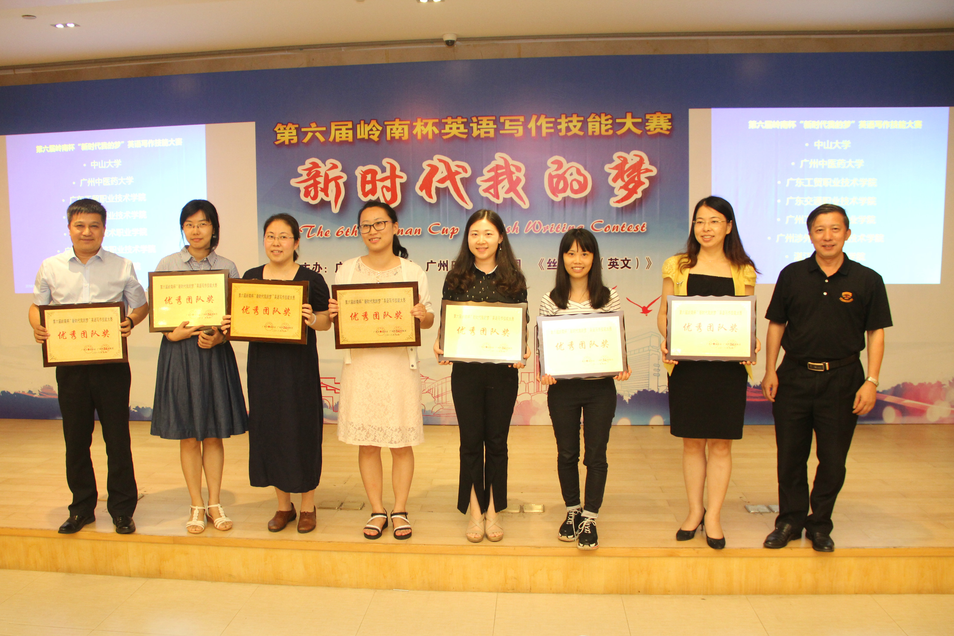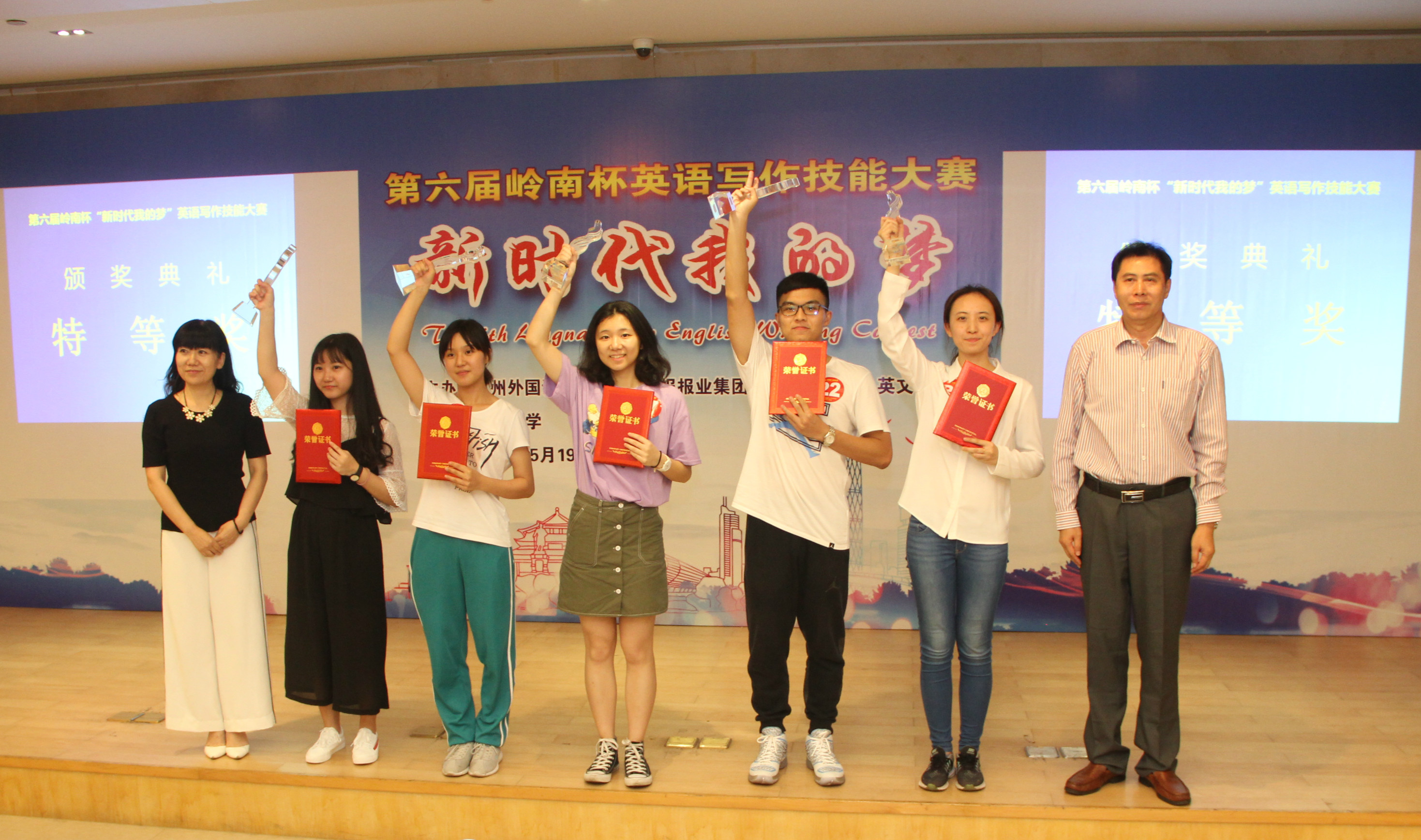 5月19日,第六届“岭南杯”英语写作技能大赛在我校外国语学院举行。我校学子冯莉媛(2017级法学院)、谢雨辰(2015级外国语学院)分别摘获公共英语组和专业英语组冠军(特等奖),冯莉媛还获得了大赛“金笔奖”。英语系主任戴凡教授、外语教学中心主任陈静副教授分别担任两位冠军选手的指导教师,并双双获得“优秀指导教师”奖。
