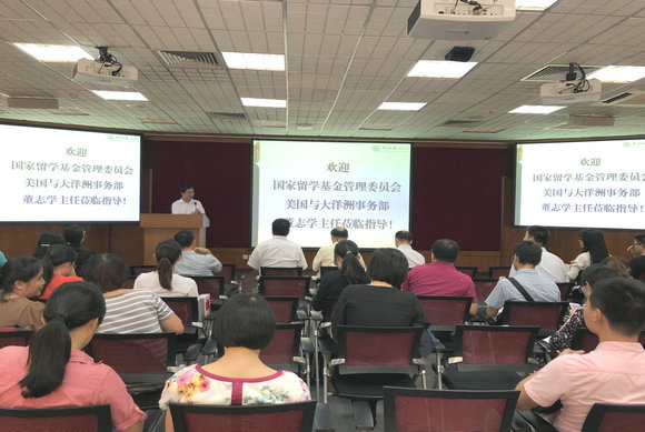 受我校研究生院邀请,5月22日,国家留学基金管理委员会美国与大洋洲事务部主任董志学来我校指导国家公派出国留学工作。并出席我校组织召开的国家留学基金管理委员会资助出国留学项目介绍会。我校副校长黎孟枫,研究生院、教务部、人力资源管理处、国际合作与交流处等相关职能部门及近50个培养单位有关分管领导和管理人员出席会议。会议由研究生院院长董文杰主持。