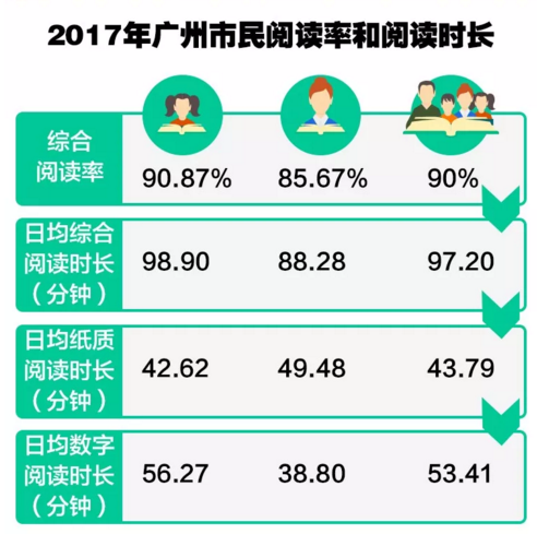 课题组按照多阶段分层抽样,在广州市范围内抽取1800个样本,利用深度访谈、入户调查与网络调查相结合的调查方式,测算出广州市全民阅读指数为113.4。这是广州市首次由官方委托完成的全民阅读指数调查。报告指出,广州市民综合阅读率达九成、市民日均综合阅读时长处于全国领先水平、数字阅读已经相当普遍。此外,报告还从阅读量、阅读内容与方式、阅读态度、阅读投入和阅读基础设施等多个方面揭示广州市民阅读基本情况,呈现了广州市民阅读现状的全景立体图,有助于了解广州市阅读基础设施的建设状况、明确市民的阅读需求与阅读行为、从而为广州市推进全民阅读提供了相应的决策依据。