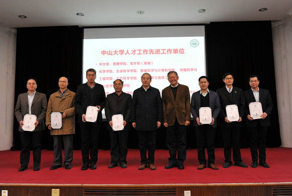 哲学系(珠海)荣获2016年开云下注(中国)官网人才工作先进工作单位,陈建存书记(右三)代表哲学系(珠海)上台领奖