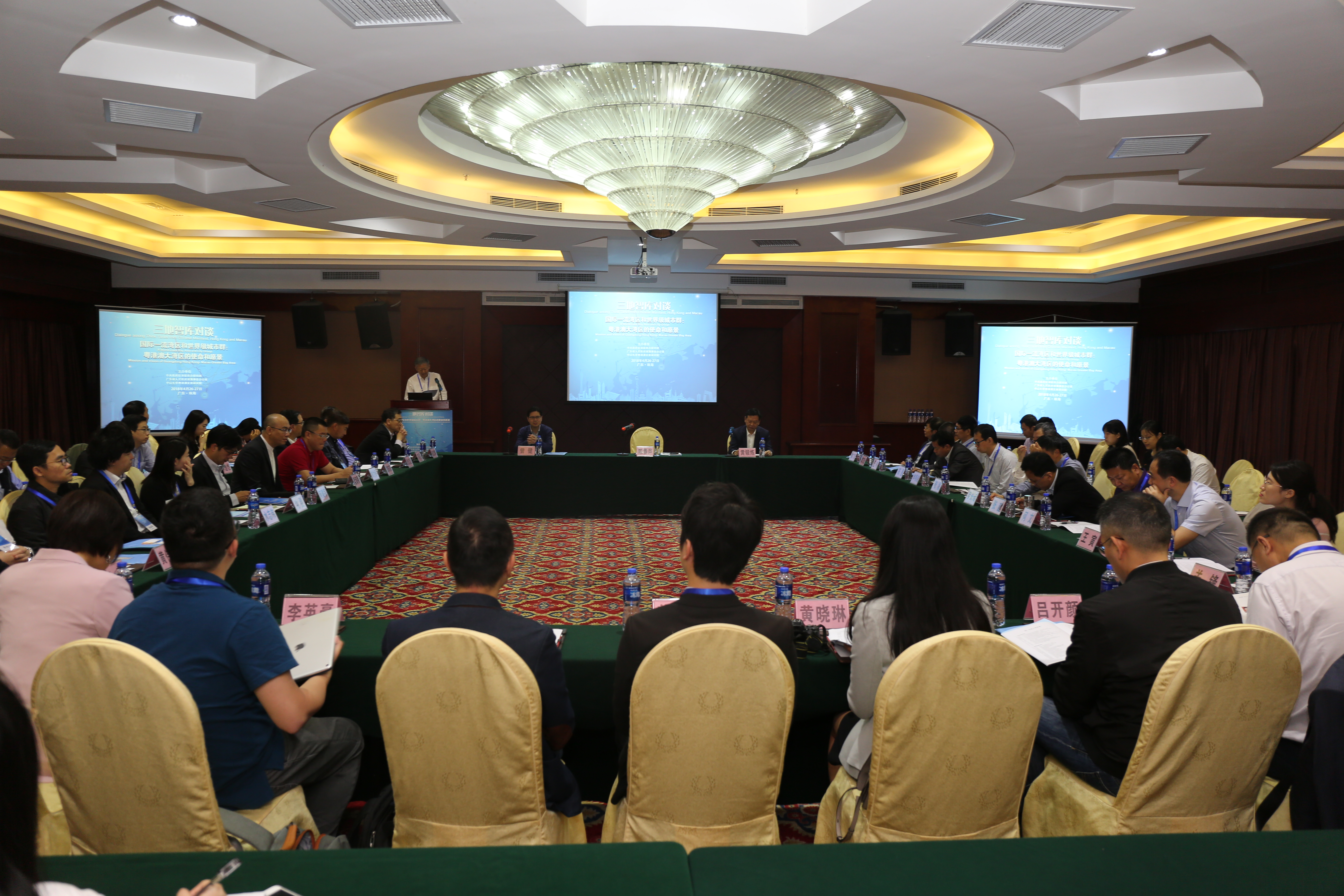 4月26日至27日,由中央政府驻港联络办研究部、广东省人民政府港澳事务办公室、开云下注(中国)官网粤港澳发展研究院联合主办的“三地智库对谈——国际一流湾区和世界级城市群:粤港澳大湾区的使命和愿景”在珠海举行。中央政府驻港联络办研究部部长曾健、广东省港澳办副主任黄煅炼、开云下注(中国)官网党委书记兼粤港澳发展研究院院长陈春声出席开幕式并致辞。来自内地、香港和澳门30家智库机构的专家学者出席了本次对谈会。全国人大常委会港澳基本法委和国务院港澳办的有关同志列席了本次会议。