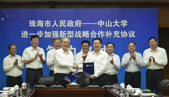 4月14日下午,我校与珠海市人民政府进一步加强新型战略合作补充协议签约仪式,在广州校区南校园格兰堂举行。珠海市委书记、市人大常委会主任郭永航,珠海市委副书记、市长姚奕生;我校党委书记陈春声、校长罗俊、常务副校长孙冬柏等出席签约仪式。姚奕生与罗俊分别代表市校双方签署战略合作补充协议。签约仪式由陈春声主持。