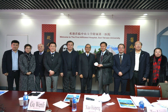 1月31日,美国纽约州立大学布法罗分校(又称“布法罗大学”)校长Satish Tripathi教授、副校长Stephen Dunnett教授,美国罗斯威尔·帕克癌症研究所助理教授Yeong Christopher Choi,香港理工大学创新及科技发展部总监刘乐庭博士,Athenex公司行政总裁及董事长刘耀南博士等一行到访我校,与我校商谈转化医学合作事宜。我校肖海鹏副校长在附属第一医院会见了代表团。
